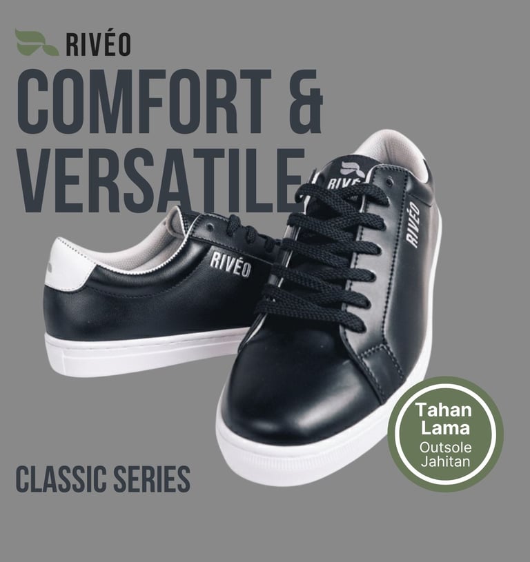 Setiap produk Riveo dibuat dengan perhatian pada detail, mulai dari bahan, bentuk, sampai kenyamanan. Filosofinya sederhana: sepatu harus nyaman dipakai, tapi juga enak dilihat. Gaya klasik dan modern berpadu dalam setiap desainnya, bikin Riveo cocok untuk berbagai kesempatan.